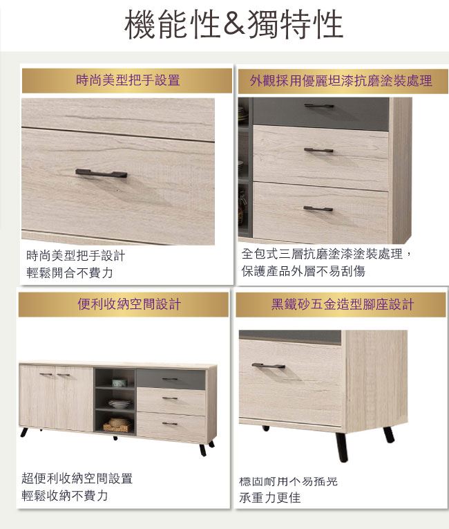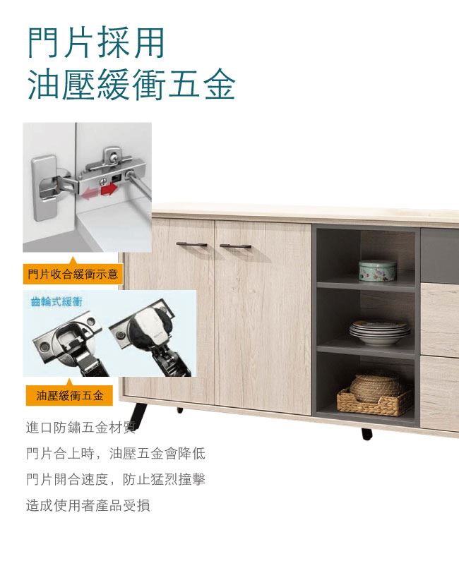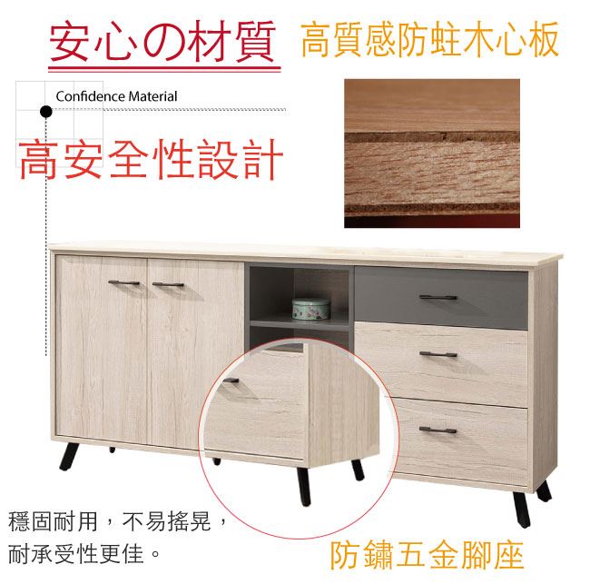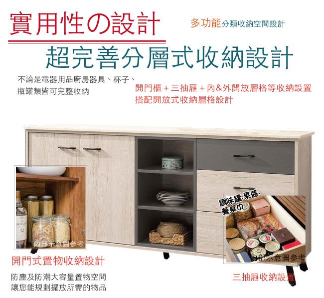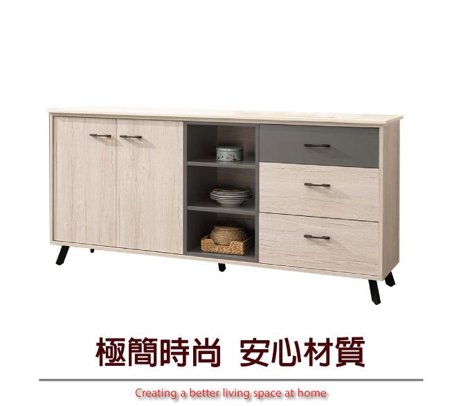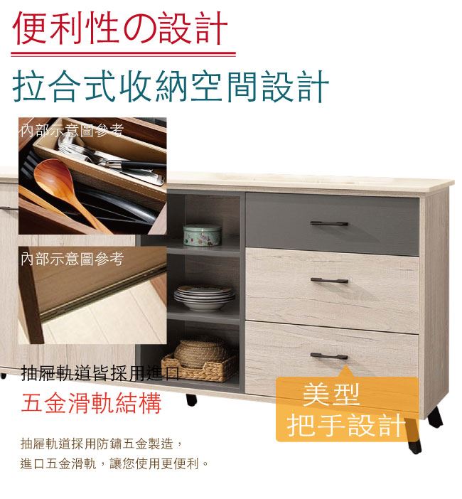 商品 介紹 | 【綠家居】賈維 雙色6尺雲紋石面餐櫃/收納櫃 木紋雙色系+現代簡約風格+安心材質製造,整體採用防蛀木心板+五金滑軌結構+防鏽黑漆腳座+防夾手緩衝門片五金+12mm雲紋石面板等安心材質製造,搭配採用開門櫃+三抽屜+內&外開放式收納等收納空間設計,全由專人配送到家,專業安心服務,替你省下更多時間! 【商品特色】 木紋雙色系+現代簡約風格+安心材質製造,使用放心+搭配居家更便利 採用防蛀木心板+五金滑軌結構+防鏽黑漆腳座+防夾手緩衝門片五金+12mm雲紋石面板等安心材質製造 採用開門櫃+三抽屜+內&外開放式收納等收納空間設計 此商品不需要DIY組立,此商品為組立後之成品 全由專人配送到家,專業安心服務,替您省下更多時間 |