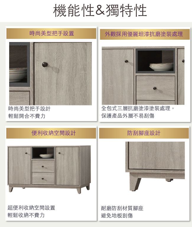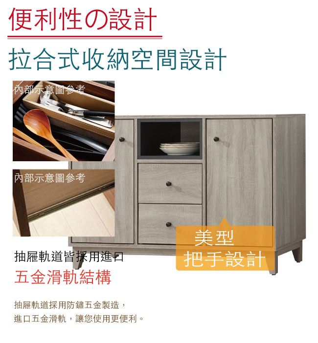 商品 介紹 | 【綠家居】約納 時尚5尺二門二抽餐櫃/收納櫃 橡木紋色系+現代簡約風格+安心材質製造,整體採用防蛀木心板+防夾手緩衝門片五金結構+防潮耐磨腳座+五金滑軌結構等安心材質製造,搭配採用開門櫃+二抽屜+開放式層格等收納空間設計,全由專人配送到家,專業安心服務,替你省下更多時間! 【商品特色】 橡木紋色系+現代簡約風格+安心材質製造,使用放心+搭配居家更便利 採用防蛀木心板+防夾手緩衝門片五金結構+防潮耐磨腳座+五金滑軌結構等安心材質製造 採用開門櫃+二抽屜+開放式層格等收納空間設計 此商品不需要DIY組立,此商品為組立後之成品 品質保證、專業設計、貼心服務 全由專人配送到家,專業安心服務,替您省下更多時間 |