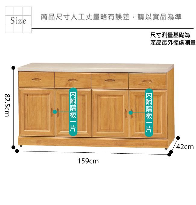 材質 | ◆產品名稱: 【綠家居】古特菲 赤楊木5.3尺雲紋石面餐櫃 產品尺寸: 尺寸:(寬)159x(深)42x(高)82.5/公分 ◆材質: 材質:松木實木+防蛀木心板+防潮耐磨腳座 材質:五金滑軌結構+2cm雲紋石面桌面板 塗漆:優利坦全包式耐磨噴漆處理