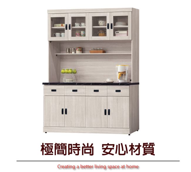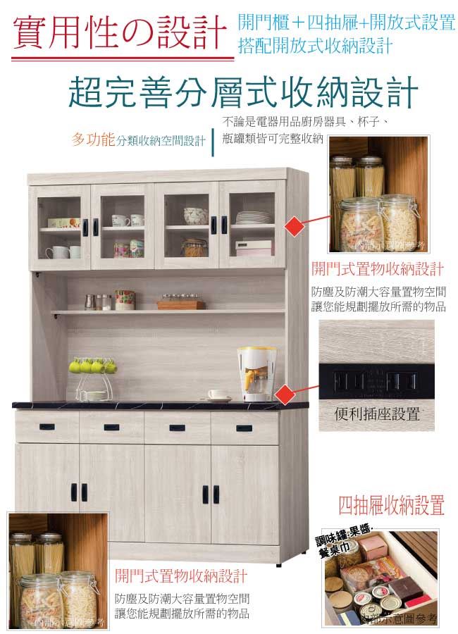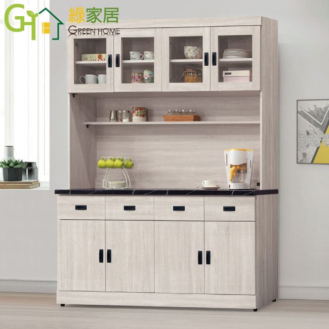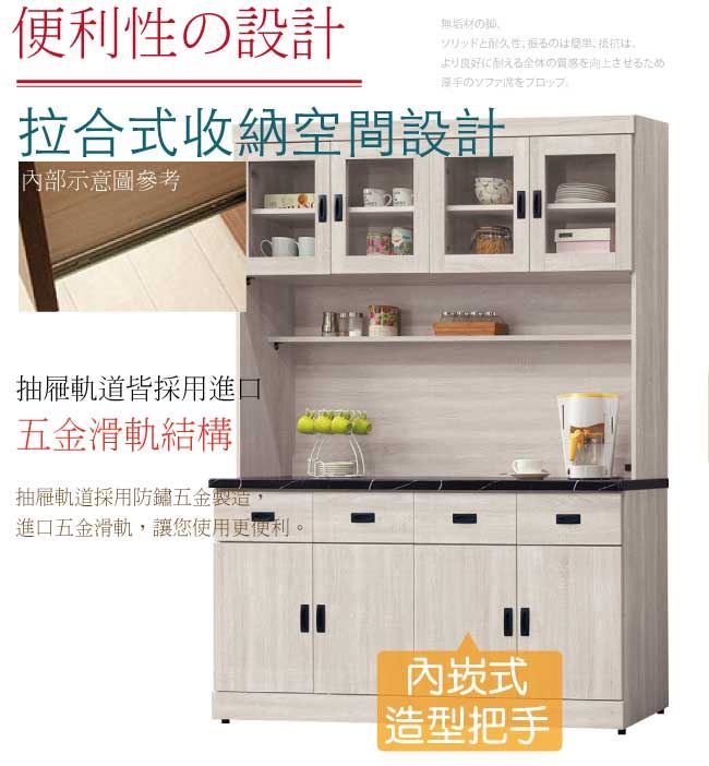 【綠家居】羅馬特 淺橡5.3尺雲紋石面高餐櫃組合