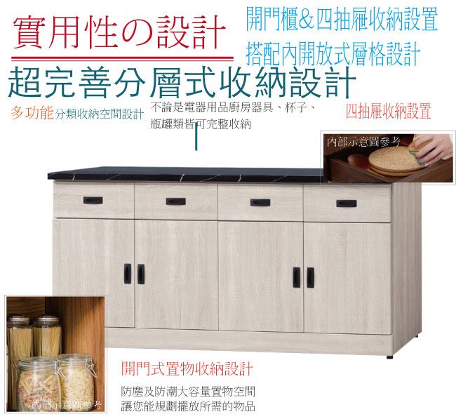 【綠家居】羅馬特 淺橡5.3尺雲紋石面餐櫃