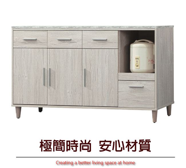商品 介紹 | 【綠家居】瑪波特 橡木紋5.3尺三門四抽餐櫃 淺橡木紋色系+現代簡約風格+安心材質製造,整體採用防蛀木心板+五金滑軌結構+防潮耐磨腳座+仿雲紋石紋路木質桌面板+防夾手緩衝門片五金等安心材質製造,外層採用優利坦全包式耐磨噴漆處理搭配開門櫃+三抽屜+開放式層格+拉合式層架等收納設計,全由專人配送到家,專業安心服務,替你省下更多時間! 【商品特色】 淺橡木紋色系+現代簡約風格+安心材質製造,使用放心+搭配居家更便利 採用防蛀木心板+五金滑軌結構+防潮耐磨腳座+仿雲紋石紋路木質桌面板+防夾手緩衝門片五金等安心材質製造 開門櫃+三抽屜+開放式層格+拉合式層架等收納設計 品質保證、專業設計、貼心服務 全由專人配送到家,專業安心服務,替您省下更多時間 |
