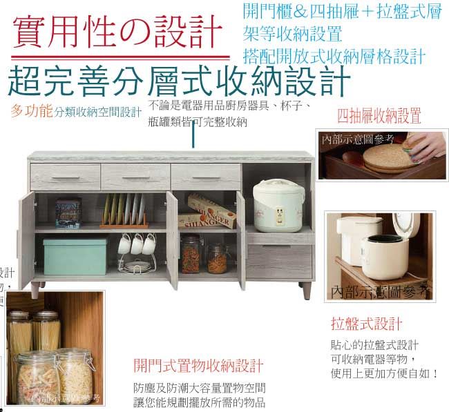 【綠家居】瑪波特 橡木紋5.3尺三門四抽餐櫃