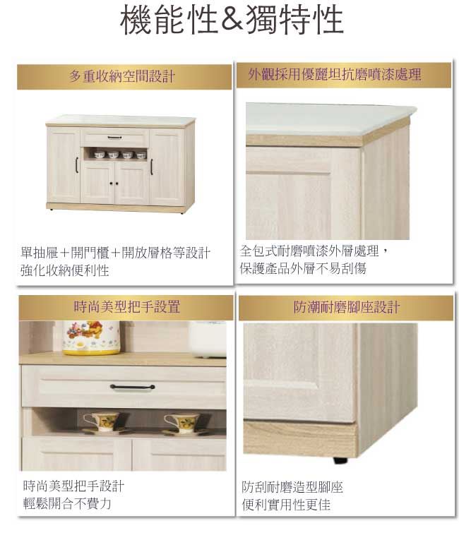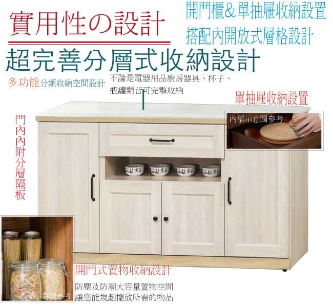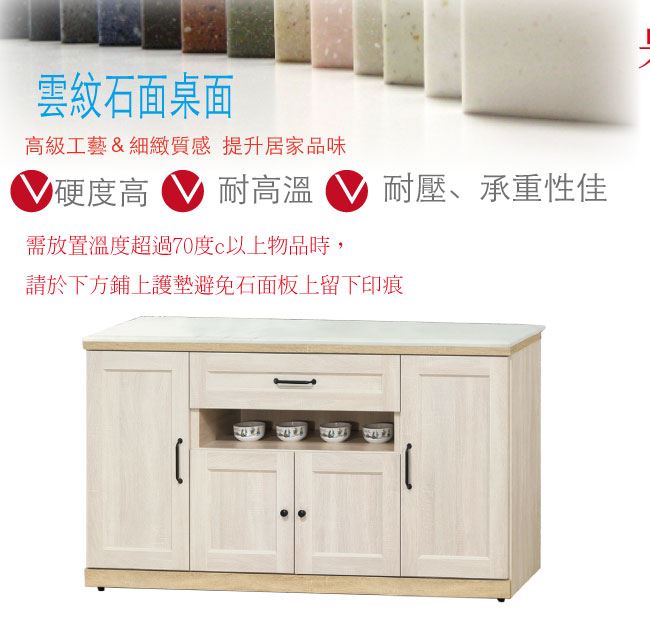 - ◆產品名稱:【綠家居】卡芬5尺雲紋石面餐櫃/收納櫃
