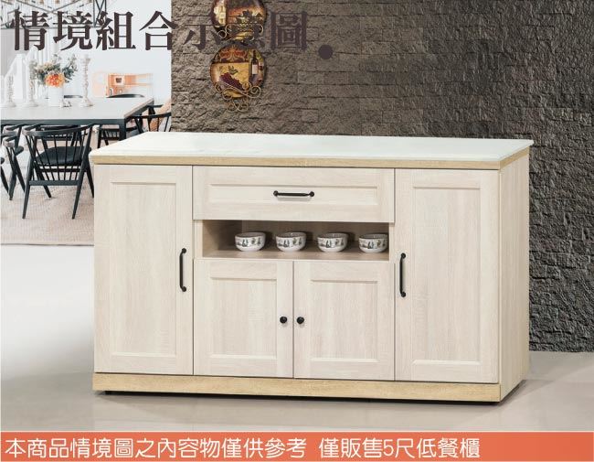 【綠家居】卡芬5尺雲紋石面餐櫃/收納櫃