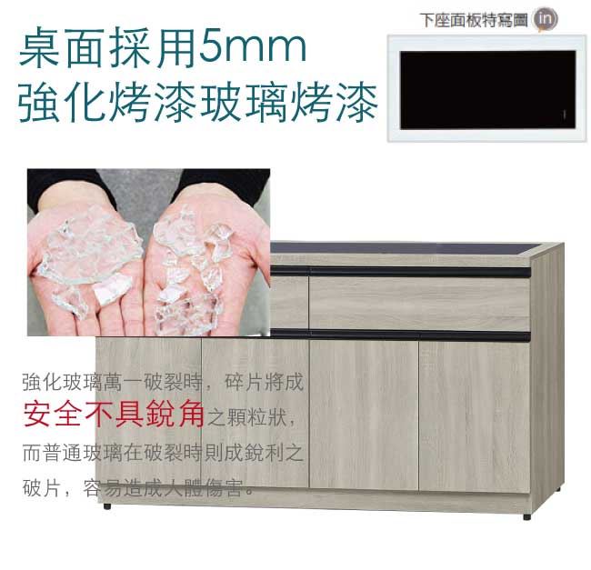 尺寸:(寬)151.8(深)40.6(高)82.4公分 ◆材質: 材質:防蛀木心板+防潮耐磨腳座+防夾手緩衝門片五金+五金滑軌結構+5mm強化黑玻桌面板+鋁製內崁式把手 噴漆:防潮耐磨噴漆處理