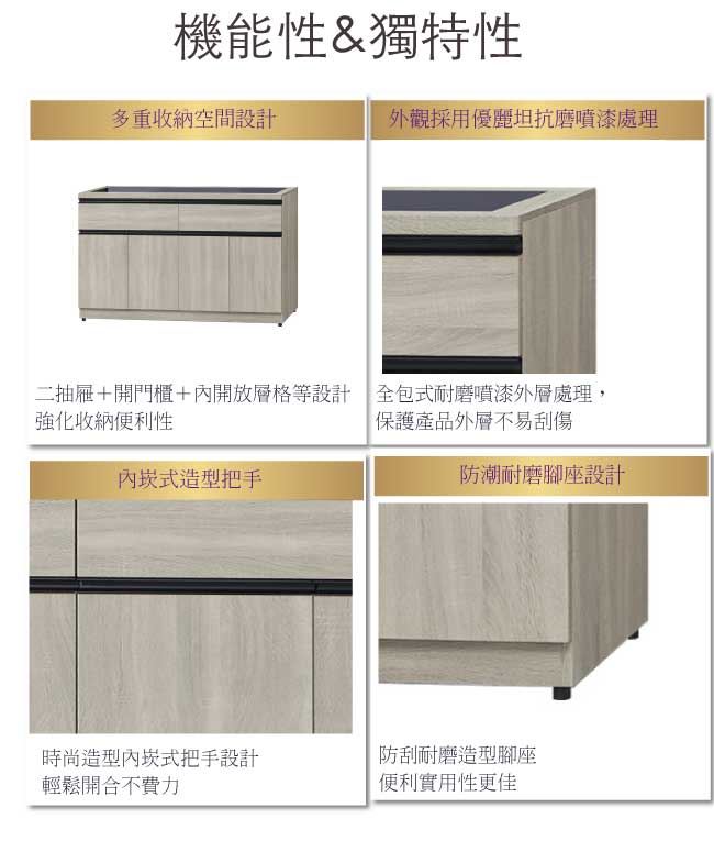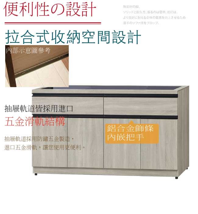 商品 介紹 | 【綠家居】艾伊迪5.1尺四門二抽黑玻餐櫃/收納櫃 灰橡木紋色系+現代簡約風格+安心材質製造,整體採用防蛀木心板+防潮耐磨腳座+五金滑軌結構+防夾手緩衝門片五金+5mm強化黑玻桌面板+鋁製內崁式把手等安心材質製造,產品外層採用防潮耐磨噴漆處理搭配採用開門櫃+二抽屜+內開放式層格等空間設計,全由專人配送到家,專業安心服務,替你省下更多時間! 【商品特色】 灰橡木紋色系+現代簡約風格+安心材質製造,使用放心+搭配居家更便利 採用防蛀木心板+防潮耐磨腳座+五金滑軌結構+防夾手緩衝門片五金+5mm強化黑玻桌面板+鋁製內崁式把手等安心材質製造 產品外層採用防潮耐磨噴漆處理 搭配採用開門櫃+二抽屜+內開放式層格等空間設計 此商品不需要DIY組立,此商品為組立後之成品 全由專人配送到家,專業安心服務,替您省下更多時間 |
