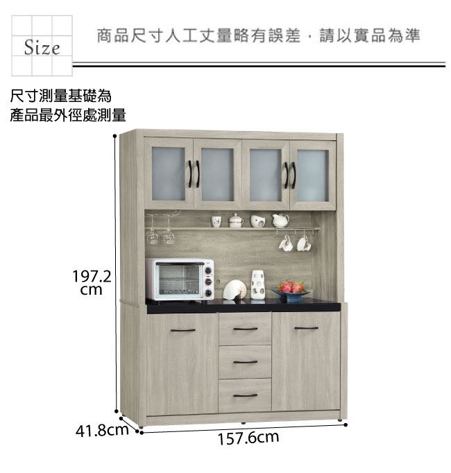 尺寸:(寬)157.6(深)41.8(高)197.2公分 ◆材質: 材質:防蛀木心板+防潮耐磨腳座+防夾手緩衝門片五金+五金滑軌結構 噴漆:防潮耐磨噴漆處理