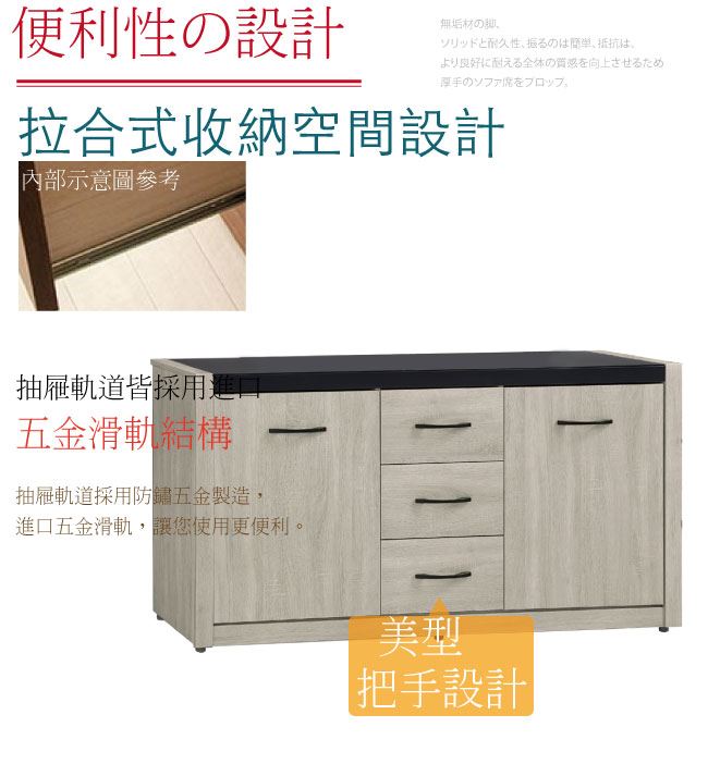 - ◆產品名稱:【綠家居】米穆5.3尺二門三抽餐櫃/收納櫃