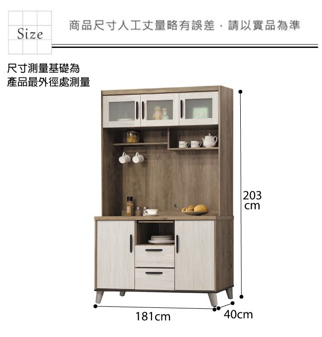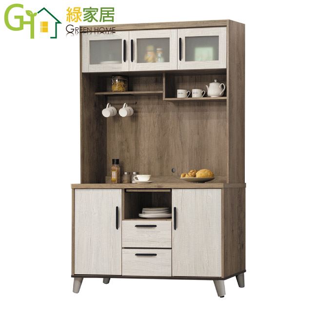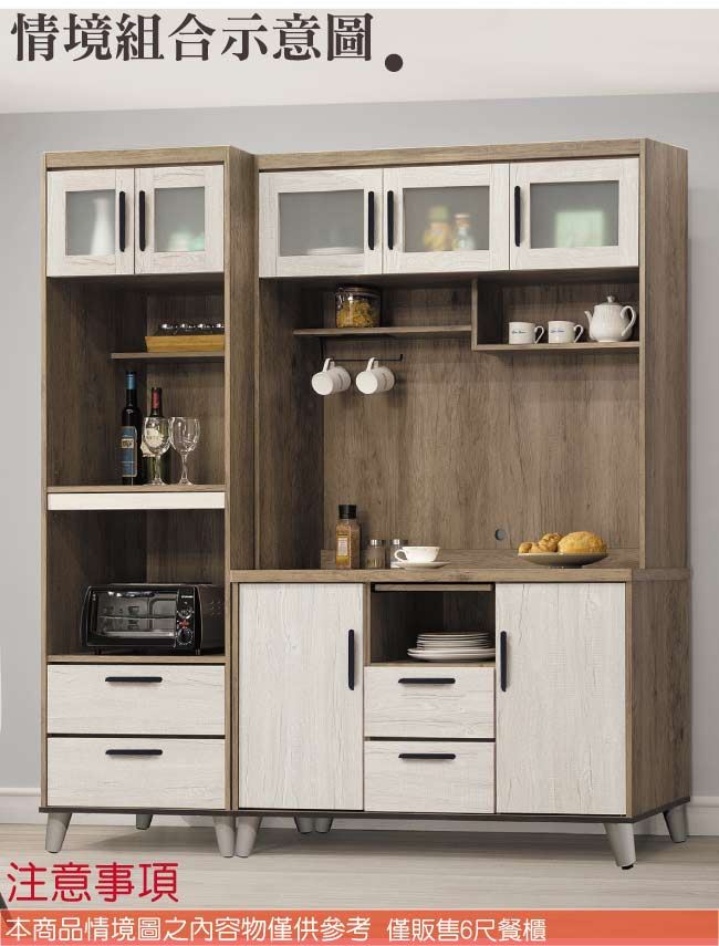 - ◆產品名稱:【綠家居】愛米凱6尺五門二抽高餐櫃/收納櫃組合