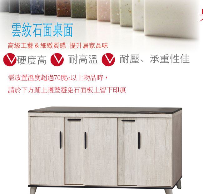 - ◆產品名稱:【綠家居】杜伊洛5尺雲紋石面餐櫃/收納櫃