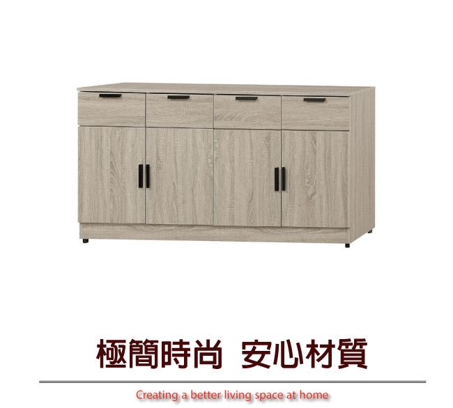 - ◆產品名稱:【綠家居】波婭5.3尺四門四抽低餐櫃/收納櫃