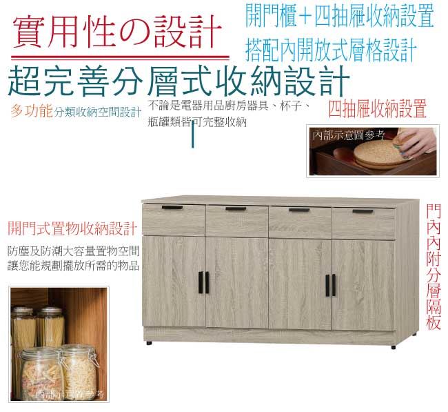 【綠家居】波婭5.3尺四門四抽低餐櫃/收納櫃