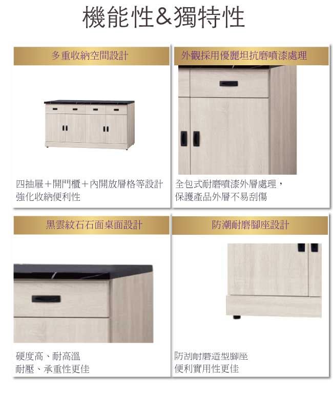 - ◆產品名稱:【綠家居】天恩淺橡5.4尺雲紋石面低餐櫃/收納櫃
