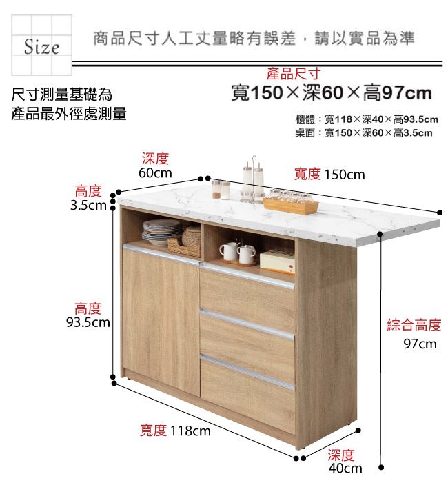 材質 | ◆產品名稱:【綠家居】溫斯5尺單門三抽吧台桌/中島桌櫃(二色可選) 尺寸:(寬)150x(深)60(高)97公分 ◆材質: 材質:防蛀木心板+防潮耐磨腳座+五金滑軌結構+防夾手緩衝門片五金 噴漆:防潮耐磨噴漆處理