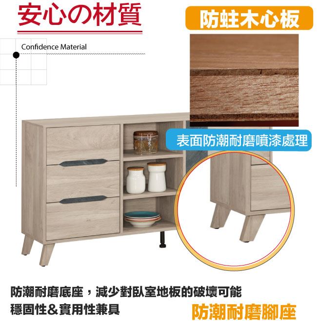 商品 介紹 | 【綠家居】比克坡5.1尺開門三抽低餐櫃 淺橡木紋色系+現代簡約風格+安心材質製造,使用放心+搭配居家更便利,整體採用防蛀木心板+防潮耐磨腳座+五金滑軌結構等材質搭配外層採用優莉坦耐磨全包式噴漆處理 ,採用開門櫃(按壓式開合設計)+三抽屜+內&外開放層格等收納空間設計,全由專人配送到家,專業安心服務,替你省下更多時間! 【商品特色】 淺橡木紋色系+現代簡約風格+安心材質製造,使用放心+搭配居家更便利 防蛀木心板+防潮耐磨腳座+五金滑軌結構等材質 採用開門櫃(按壓式開合設計)+三抽屜+內&外開放層格等收納空間設計 此商品不需要DIY組立,此商品為組立後之成品 品質保證、專業設計、貼心服務 全由專人配送到家,專業安心服務,替您省下更多時間 |