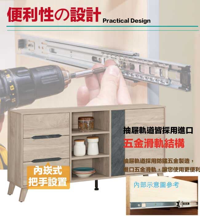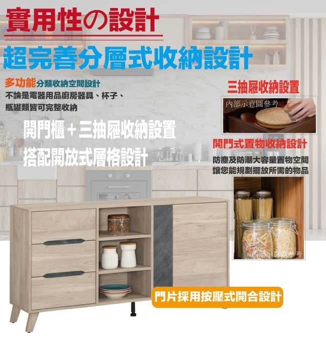 【綠家居】比克坡5.1尺開門三抽低餐櫃
