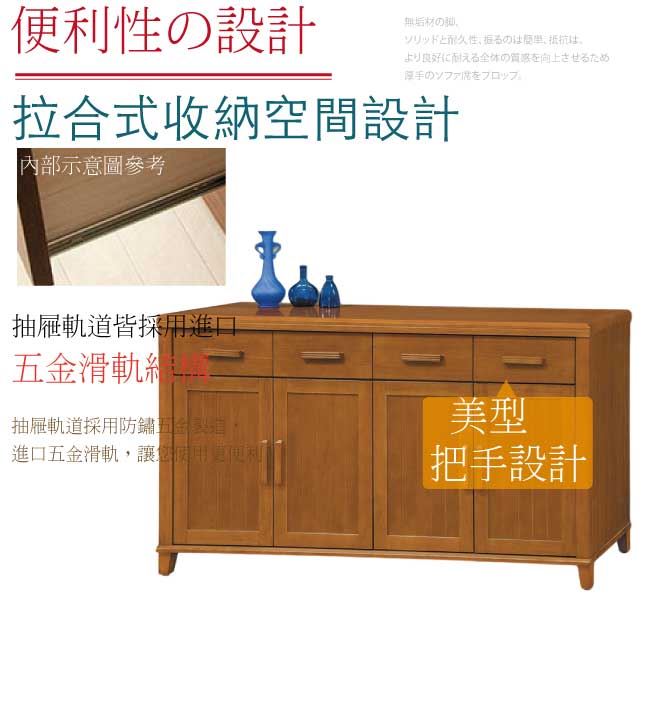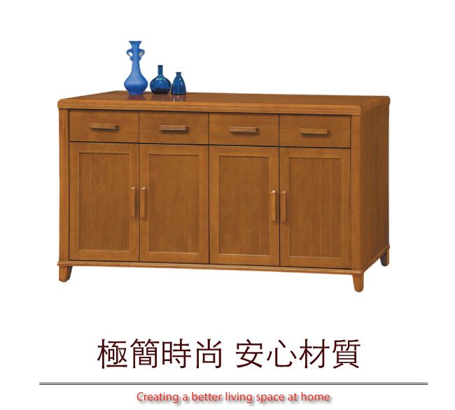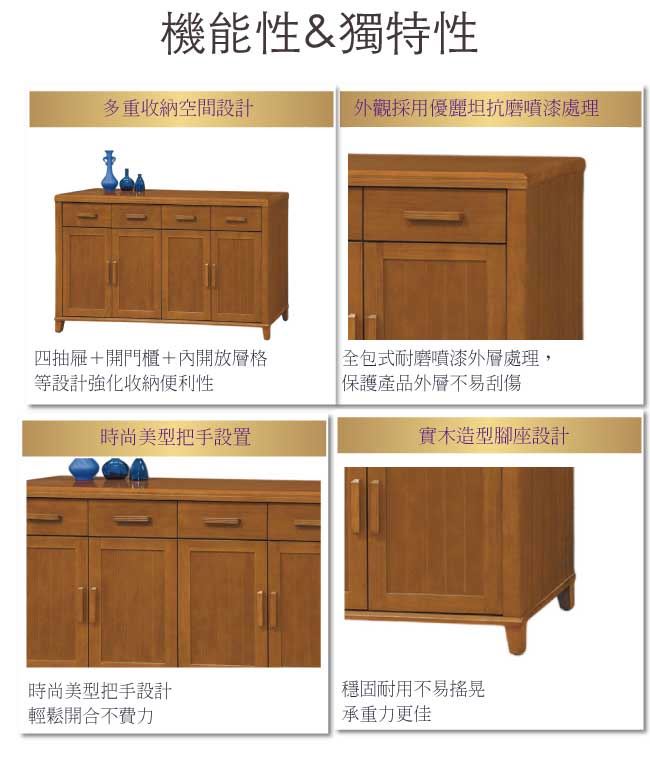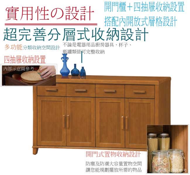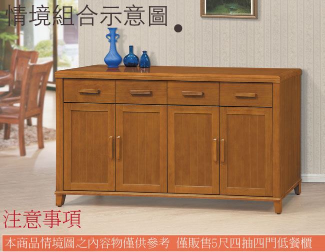 【綠家居】梅利實木5尺四門四抽餐櫃