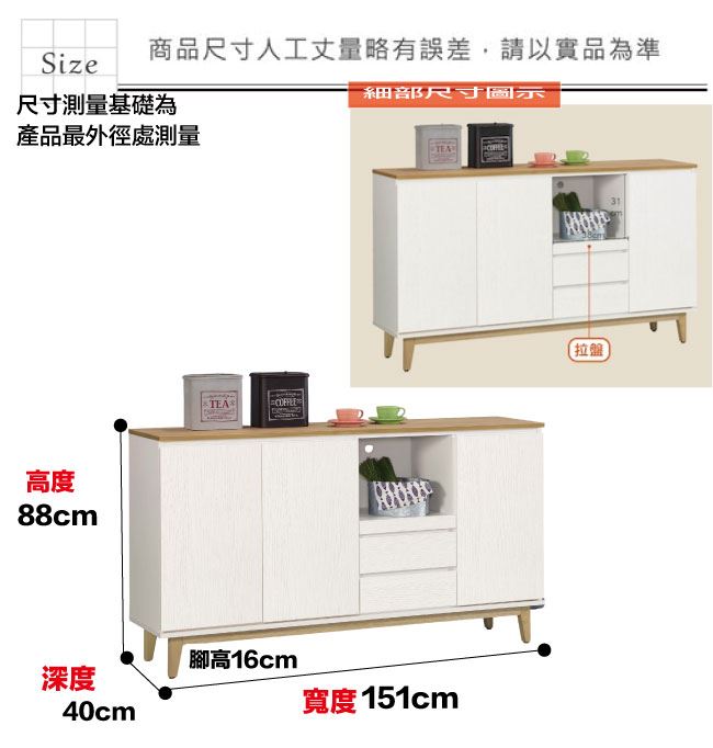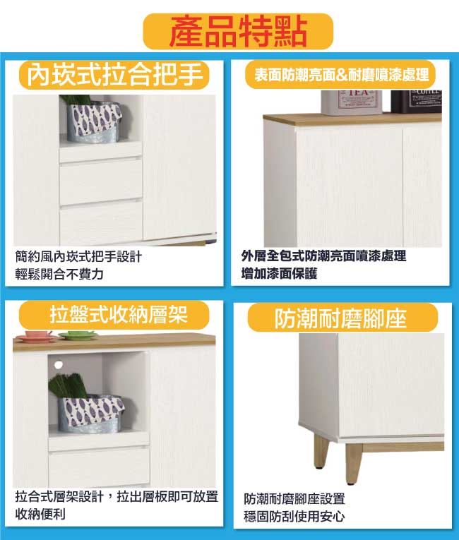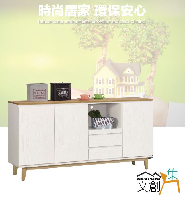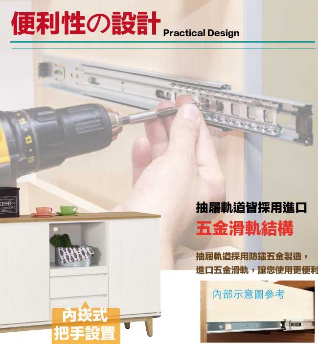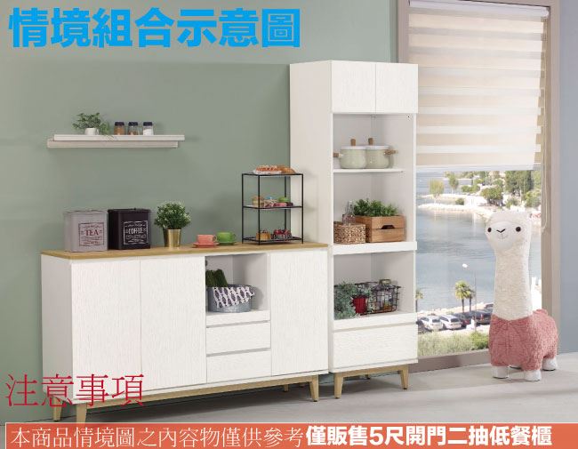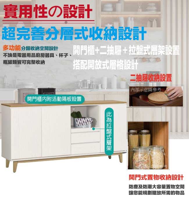 ◆產品名稱:【綠家居】奈吉亞雙色5尺三門二抽拉盤低餐櫃/收納櫃