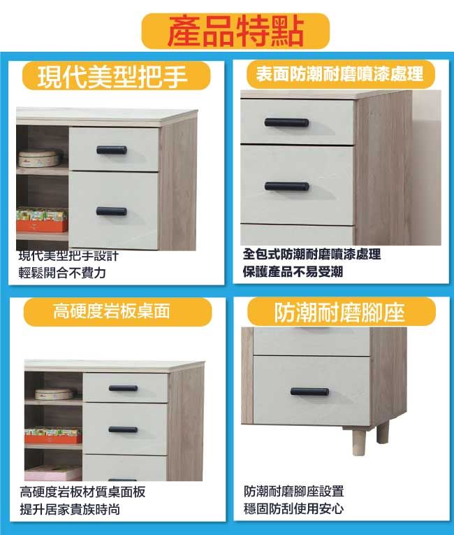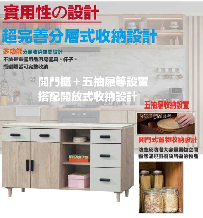 商品 介紹 | 【綠家居】卡爾夫岩板5.4尺二門五抽餐櫃 木紋雙色系+現代簡約風格+安心材質製造,使用放心+搭配居家更便利,整體採用防蛀木心板+防潮耐磨腳座+12mm高硬度岩板桌面板+防夾手緩衝門片五金+五金滑軌結構等材質搭配外層採用優莉坦耐磨全包式噴漆處理 ,採用開門櫃+五抽屜+內&外開放層格等收納空間設計,全由專人配送到家,專業安心服務,替你省下更多時間! 【商品特色】 木紋雙色系+現代簡約風格+安心材質製造,使用放心+搭配居家更便利 防蛀木心板+防潮耐磨腳座+12mm高硬度岩板桌面板+防夾手緩衝門片五金+五金滑軌結構等材質 採用開門櫃+五抽屜+內&外開放層格等收納空間設計 此商品不需要DIY組立,此商品為組立後之成品 品質保證、專業設計、貼心服務 全由專人配送到家,專業安心服務,替您省下更多時間 |