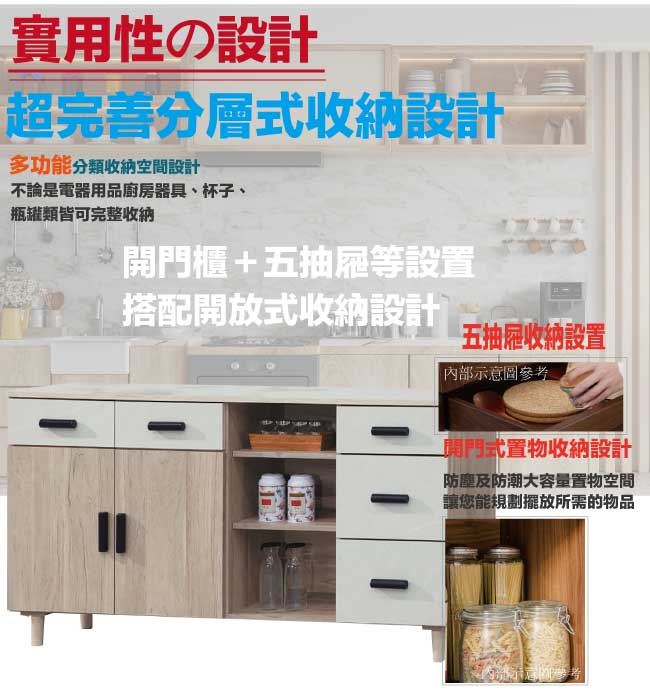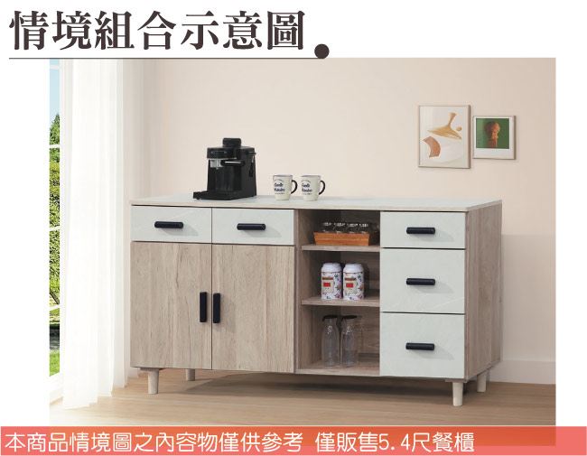 【綠家居】卡爾夫5.4尺二門五抽餐櫃