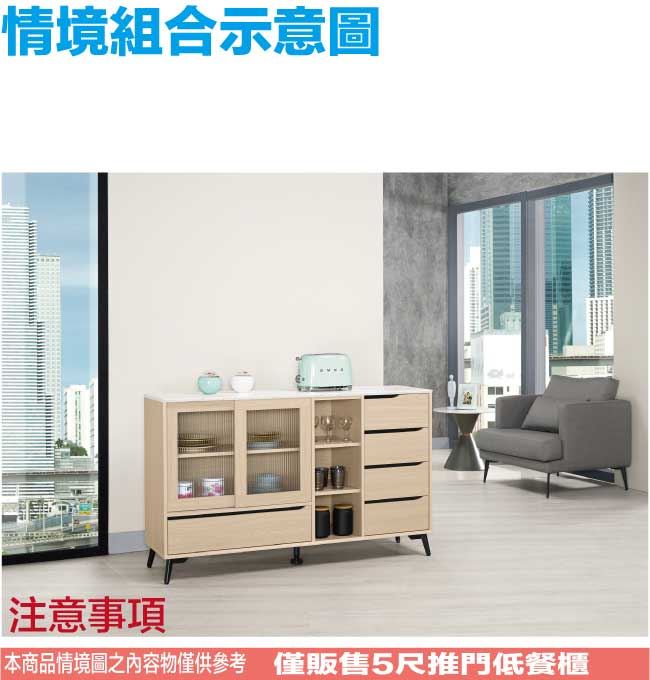 【綠家居】蘭達5尺推門玻璃五抽低餐櫃