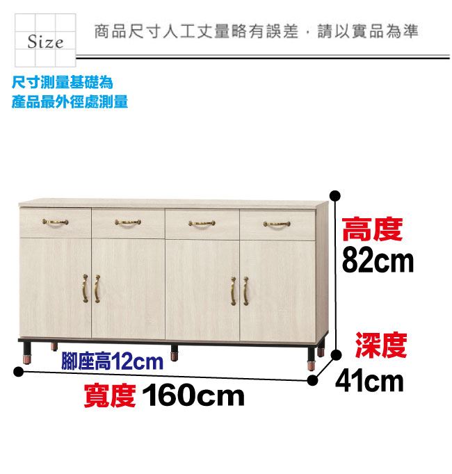 材質 | ◆產品名稱:【綠家居】洛里奇5.3尺四門四抽低餐櫃 尺寸:(寬)160x(深)41(高)82/公分 ◆材質: 材質:防蛀木心板+烤漆金屬腳座+五金滑軌結構 噴漆:防潮耐磨噴漆處理 |