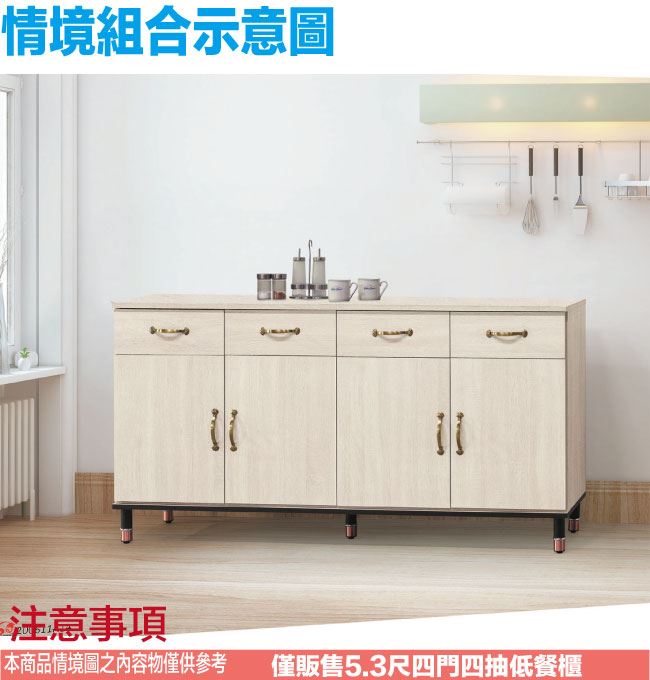 【綠家居】洛里奇5.3尺四門四抽低餐櫃