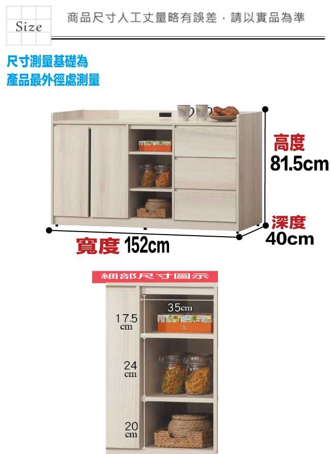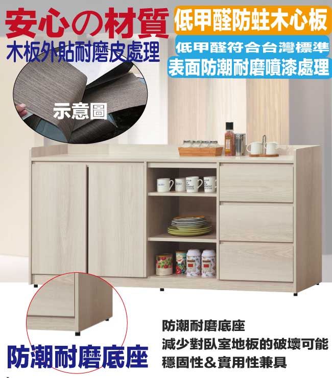 材質 | ◆產品名稱:【綠家居】馬琳5.1尺二門三抽低餐櫃 尺寸:(寬)152x(深)40x(高)81.5/公分 ◆材質: 材質:防蛀木心板+防潮耐磨底座+五金滑軌結構+防夾手緩衝門片五金 表面防潮耐磨噴漆處理 |
