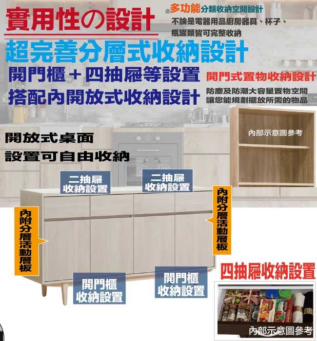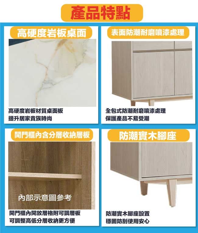 商 品 介 紹 | 【綠家居】斯巴雅5尺岩板四抽低餐櫃/收納櫃 淺橡木紋色系+現代簡約風格+安心材質製造,整體採用防蛀木心板+防潮實木腳座+五金滑軌結構+防夾手緩衝門片五金+12mm高硬度岩板桌面板等安心材質製造,產品外層採用防潮耐磨噴漆處理搭配採用開門櫃+四抽屜+內開放層格等收納空間設計,全由專人配送到家,專業安心服務,替你省下更多時間! 【商品特色】 淺橡木紋色系+現代簡約風格+安心材質製造,使用放心+搭配居家更便利 採用防蛀木心板+防潮實木腳座+五金滑軌結構+防夾手緩衝門片五金+12mm高硬度岩板桌面板等安心材質製造 搭配採用開門櫃+四抽屜+內開放層格等收納空間設計 此商品不需要DIY組立,此商品為組立後之成品 品質保證、專業設計、貼心服務 全由專人配送到家,專業安心服務,替您省下更多時間