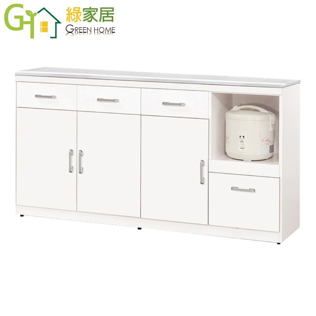 商 品 介 紹 | 【綠家居】巴克雅5.4尺岩板四抽拉盤低餐櫃/收納櫃 簡約白色系+現代簡約風格+安心材質製造,整體採用防蛀木心板+防潮耐磨腳座+五金滑軌結構+12mm高硬度岩板桌面板等安心材質製造,產品外層表面採用防潮亮面噴漆處理 搭配採用開門櫃+四抽屜+拉合式層盤+內&外開放層格等收納空間設計,全由專人配送到家,專業安心服務,替你省下更多時間! 【商品特色】 簡約白色系+現代簡約風格+安心材質製造,使用放心+搭配居家更便利 採用防蛀木心板+防潮耐磨腳座+五金滑軌結構+12mm高硬度岩板桌面板等安心材質製造 搭配採用開門櫃+四抽屜+拉合式層盤+內&外開放層格等收納空間設計 此商品不需要DIY組立,此商品為組立後之成品 品質保證、專業設計、貼心服務 全由專人配送到家,專業安心服務,替您省下更多時間
