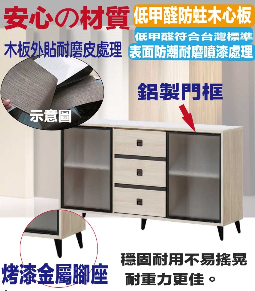 ★偏遠地區需額外加收運費,下標請先問與答詢問★ ★下訂前注意 由於商品流動較快,下訂前請先詢問是否有貨在下訂喔~★ 【綠家居】蓋曼5.3尺岩板鋁門低餐櫃 木紋雙色系+安心材質製造,使用放心+搭配居家更便利,採用防蛀木心板+烤漆五金腳座+五金滑軌結構+8mm高硬度岩板桌面板+鋁製門框+霧面強化玻璃等安心材質製造 ,外層採用防潮耐磨噴漆處理搭配採用推門櫃+三抽屜+內開放層格等收納空間設計,全由專人配送到家,專業安心服務,替你省下更多時間!