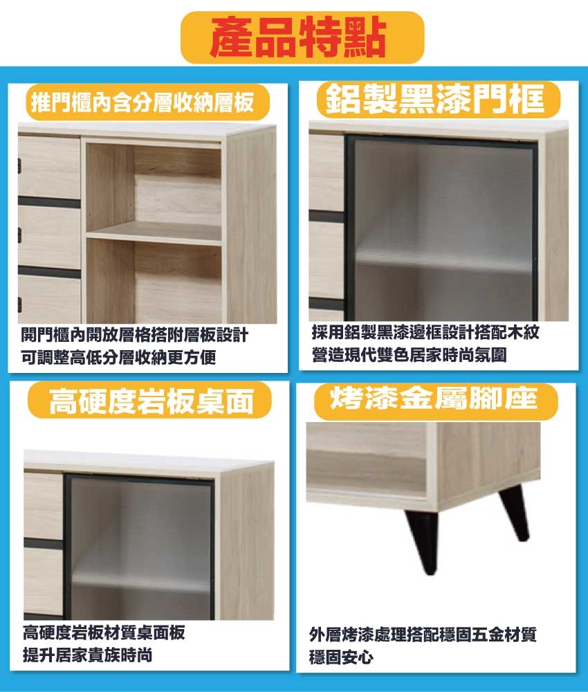 - ◆產品名稱:【綠家居】蓋曼5.3尺岩板鋁門低餐櫃