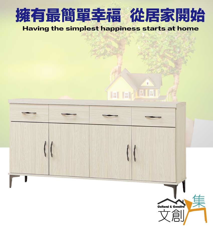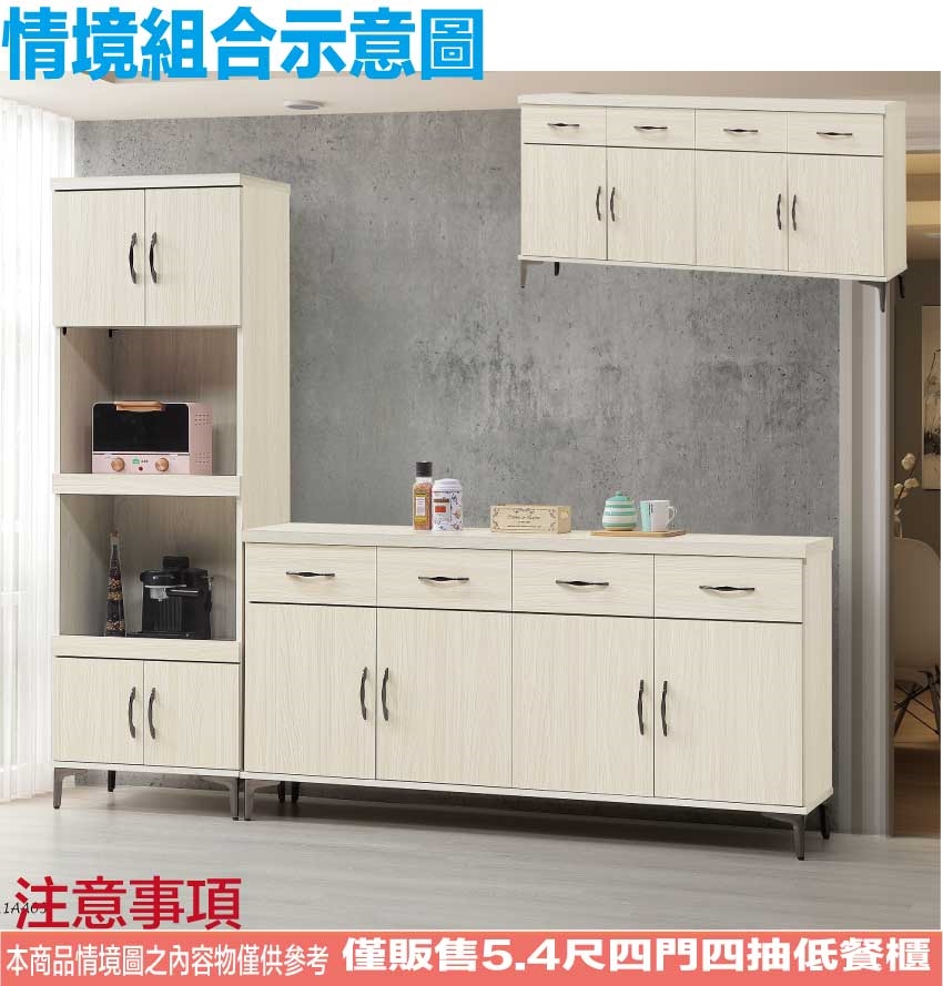 - ◆產品名稱:【綠家居】瑞秋5.4尺四門四抽低餐櫃