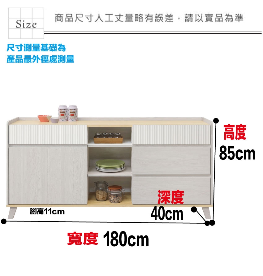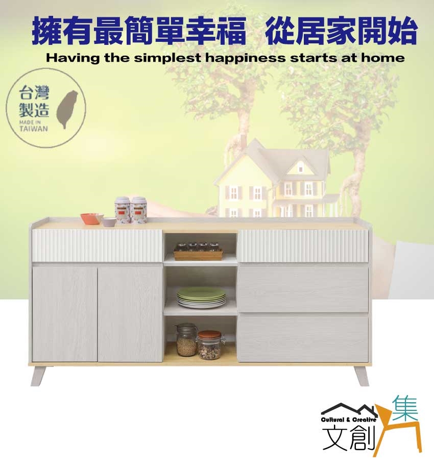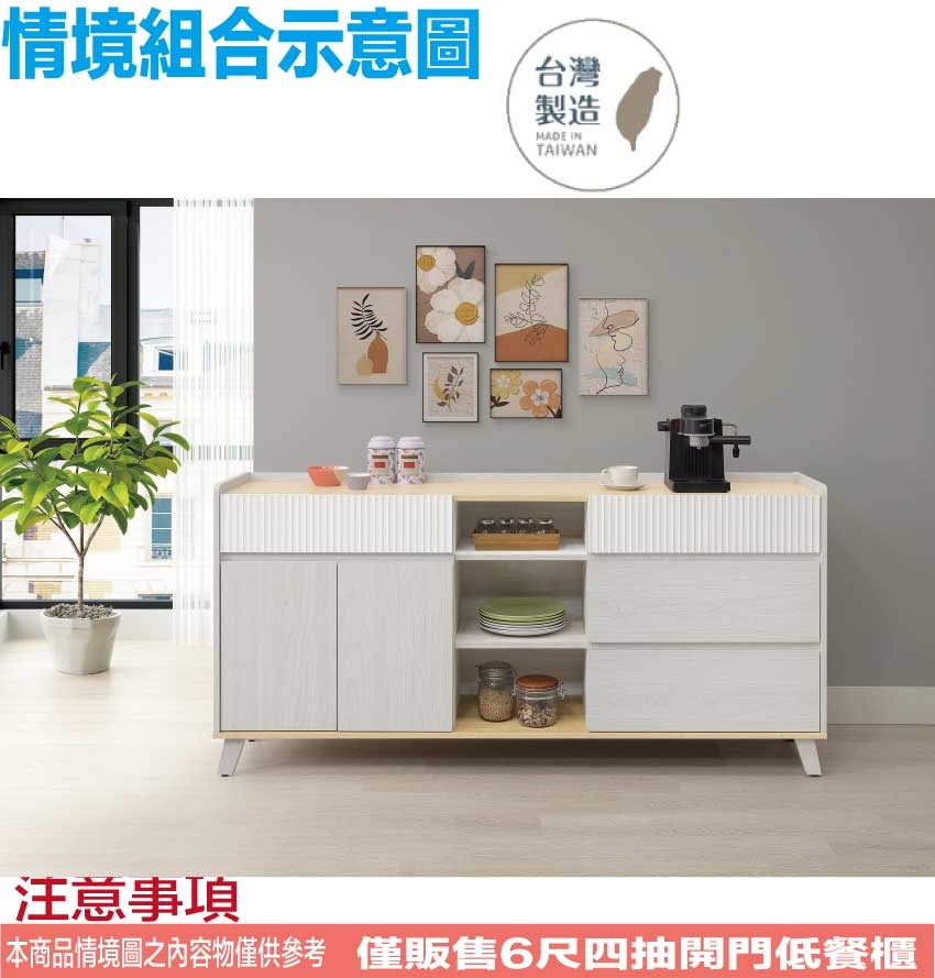 - ◆產品名稱:【綠家居】德爾6尺二門四抽餐櫃