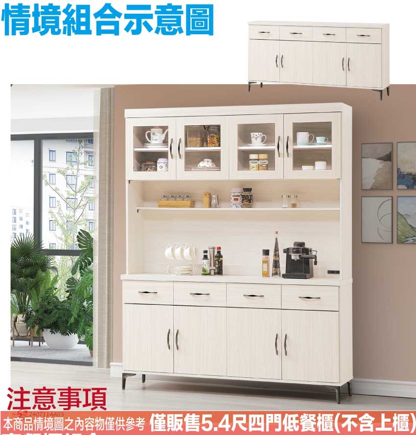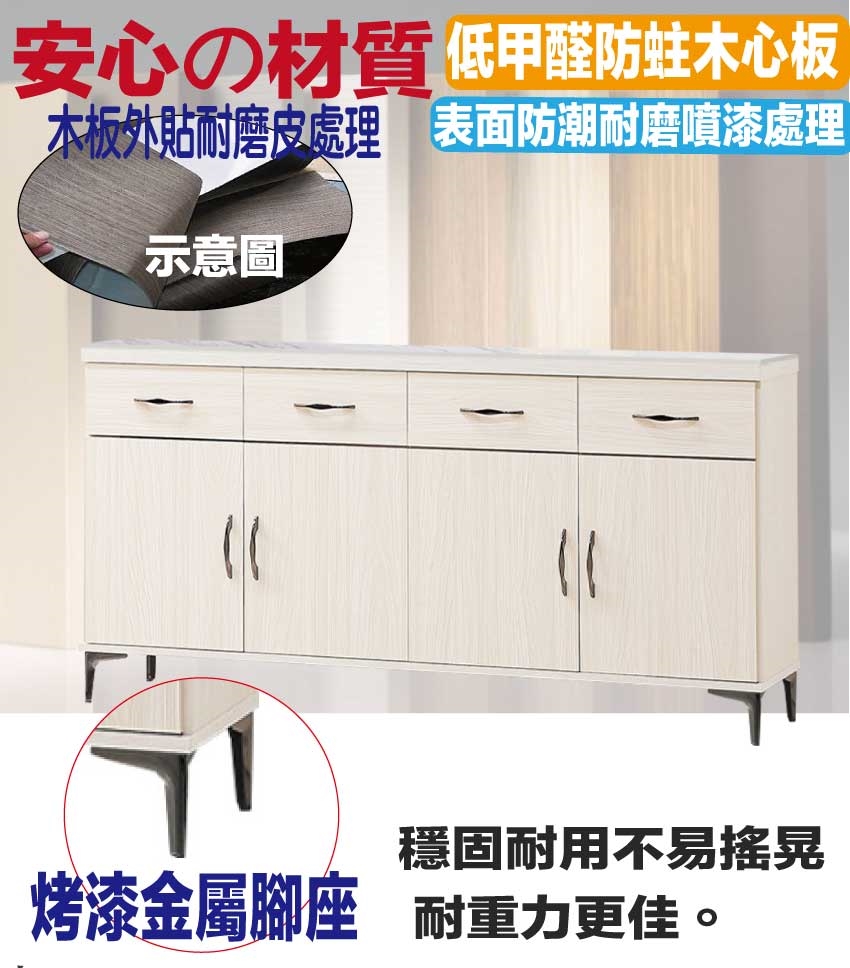 - ◆產品名稱:【綠家居】安特淺橡5.4尺四門四抽低餐櫃