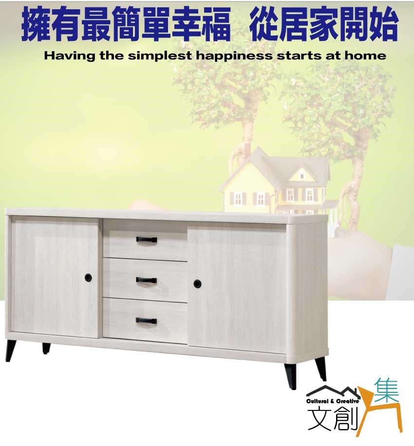- ◆產品名稱:【綠家居】杰特淺橡5.3尺推門三抽低餐櫃