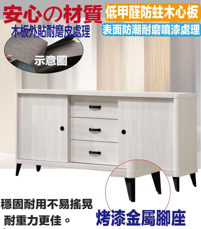 採用防蛀木心板+五金滑軌結構+烤漆五金腳座等安心材質製造