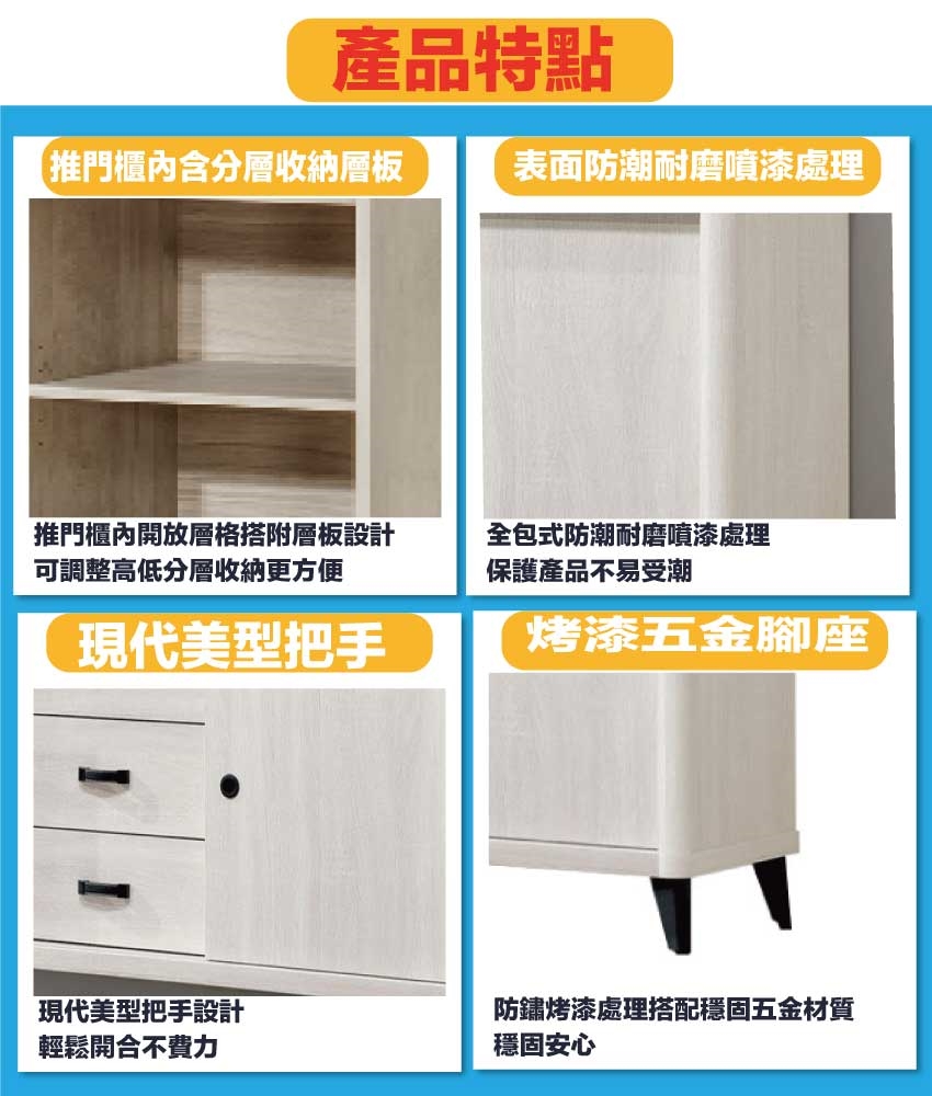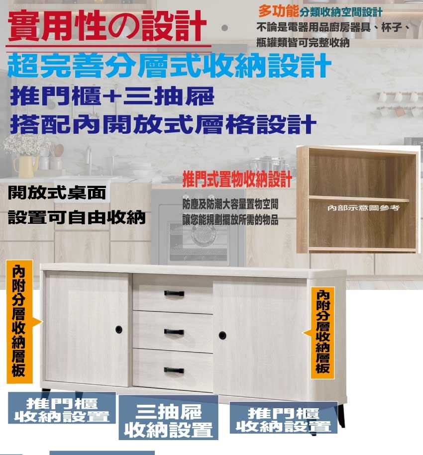 推門櫃+三抽屜+內開放層格