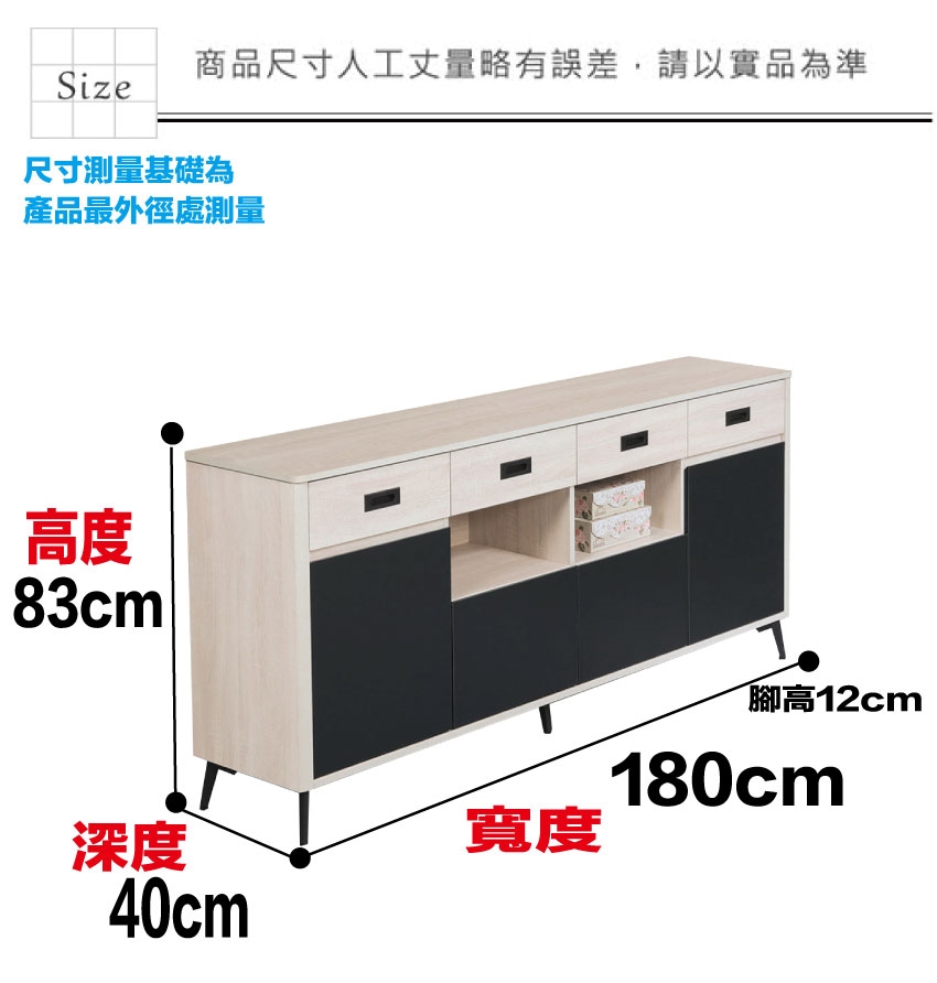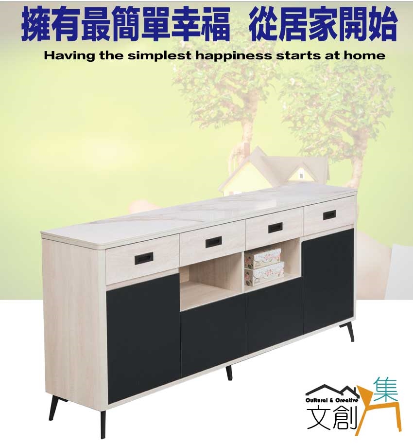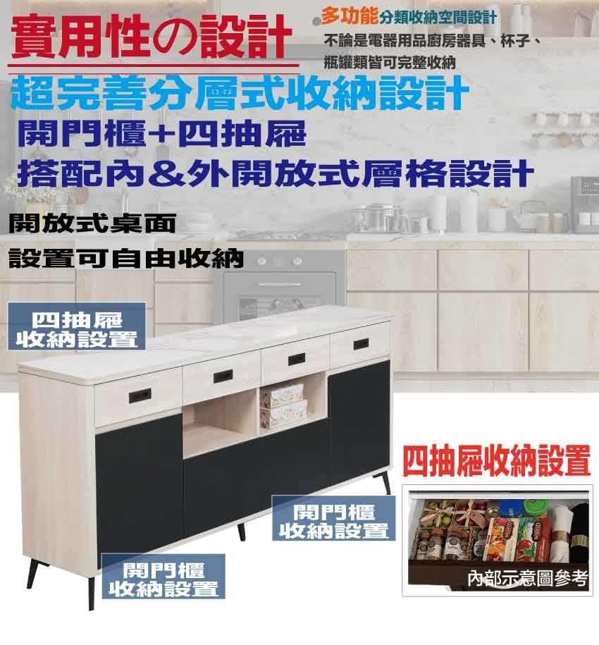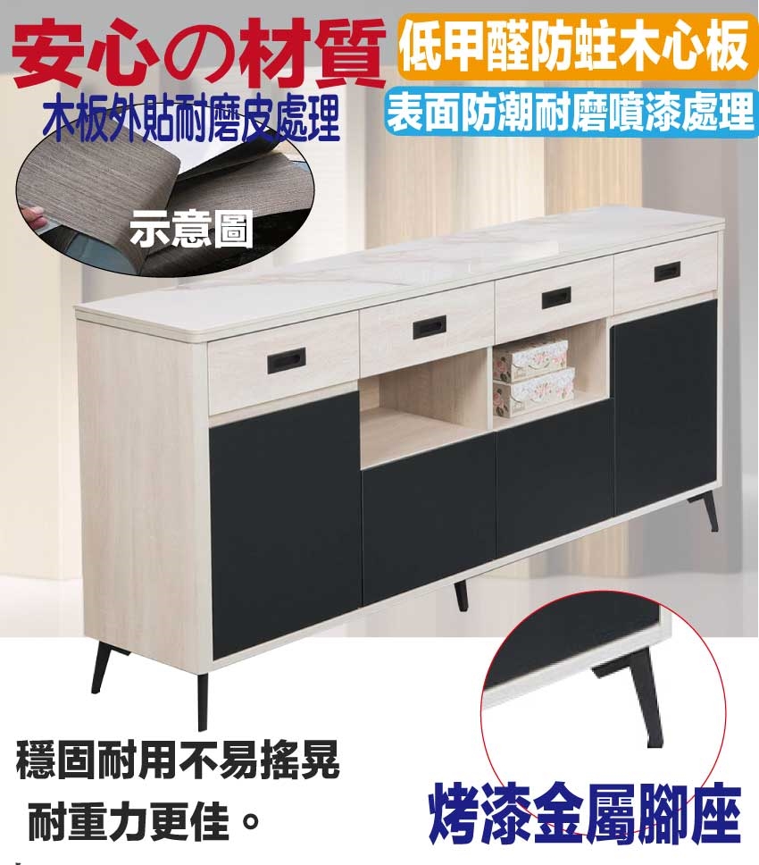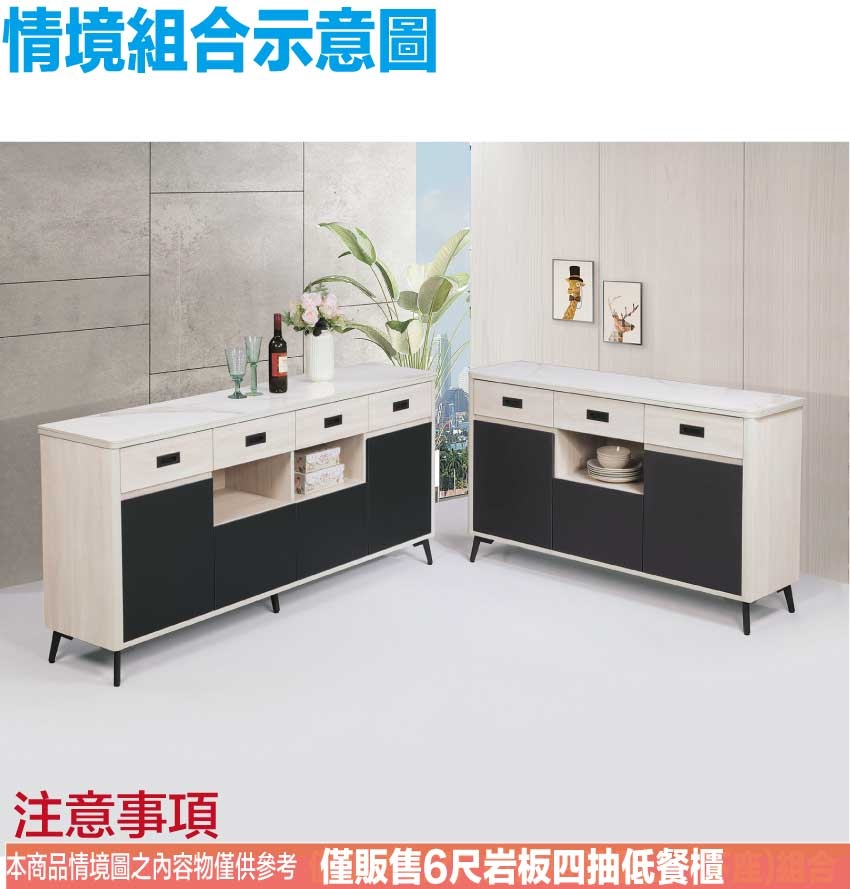 - ◆產品名稱:【綠家居】肯利岩板6尺四門四抽低餐櫃