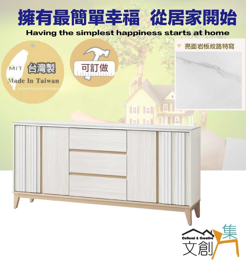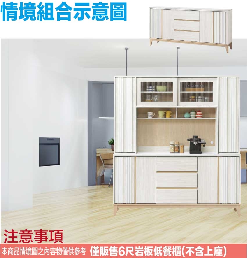 - ◆產品名稱:【綠家居】亞畢克6尺岩板四門三抽低餐櫃