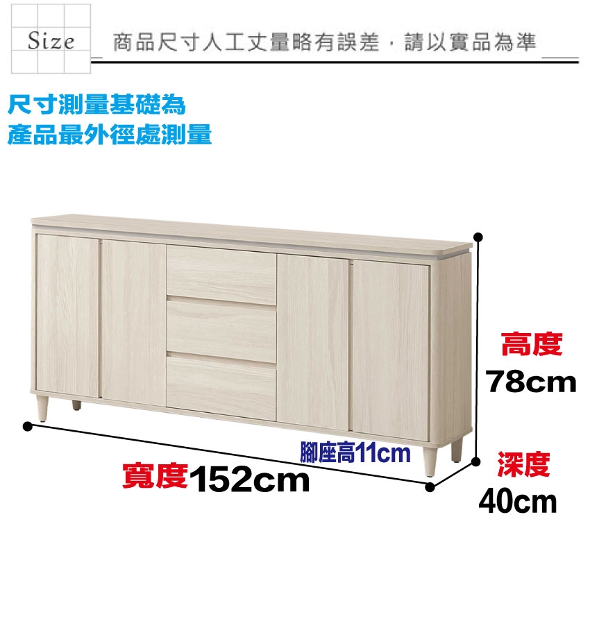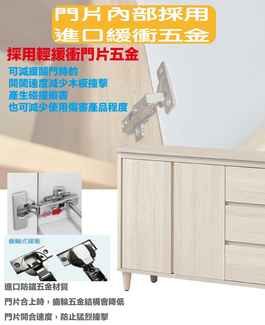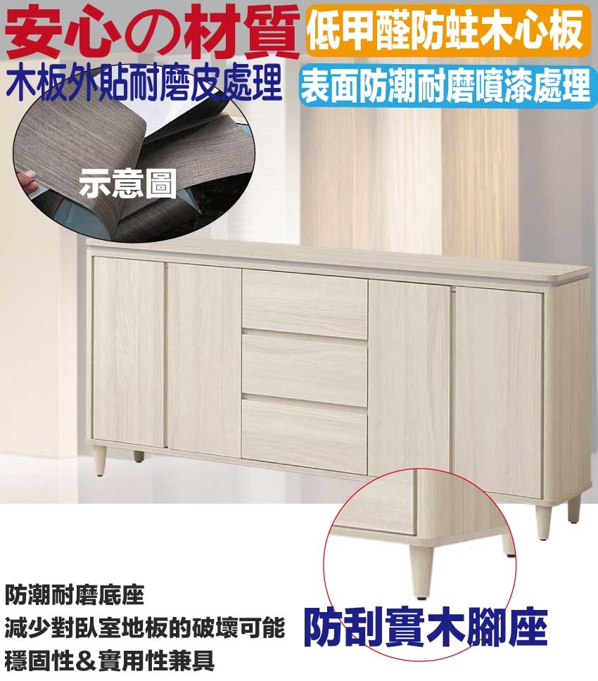 材質:防蛀木心板+防刮實木腳座(腳高11cm)+五金滑軌結構+防夾手緩衝門片五金