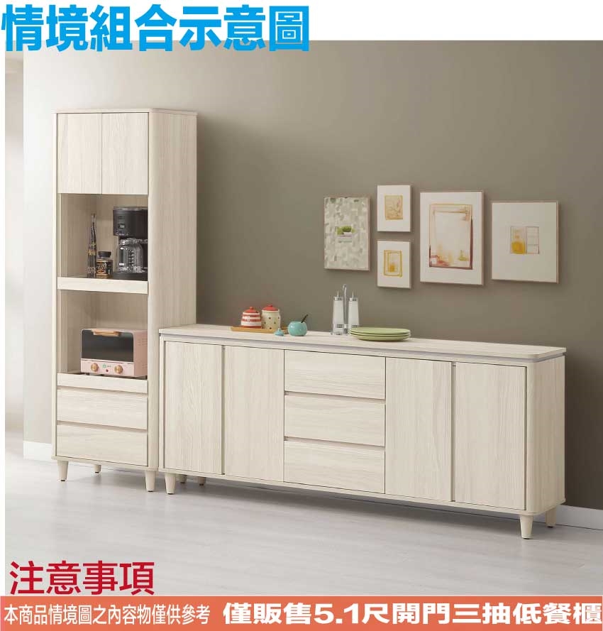 - ◆產品名稱:【綠家居】奧斯巴5.1尺四門三抽低餐櫃