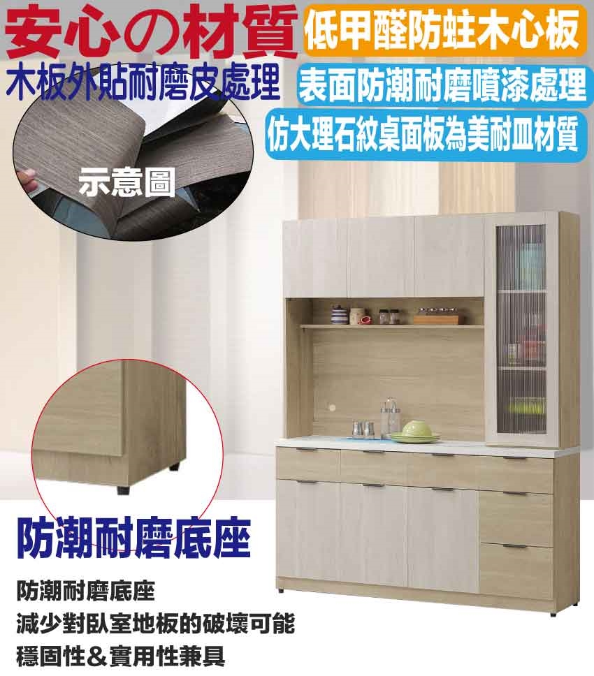 【綠家居】蘿克5.3尺開門六抽高餐櫃組合