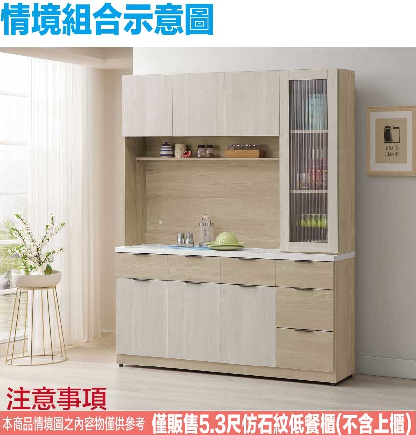 ★偏遠地區需額外加收運費,下標請先問與答詢問★ ★下訂前注意 由於商品流動較快,下訂前請先詢問是否有貨在下訂喔~★ 【綠家居】蘿克5.3尺三門六抽低餐櫃 現代雙色系+安心材質製造,使用放心+搭配居家更便利,採用防蛀木心板+防潮潮耐磨底座+五金滑軌結構+仿大理石紋耐磨美耐皿材質桌面板等安心材質製造 ,外層採用防潮耐磨噴漆處理搭配採用開門櫃+六抽屜+內開放層格等收納空間設計,全由專人配送到家,專業安心服務,替你省下更多時間!
