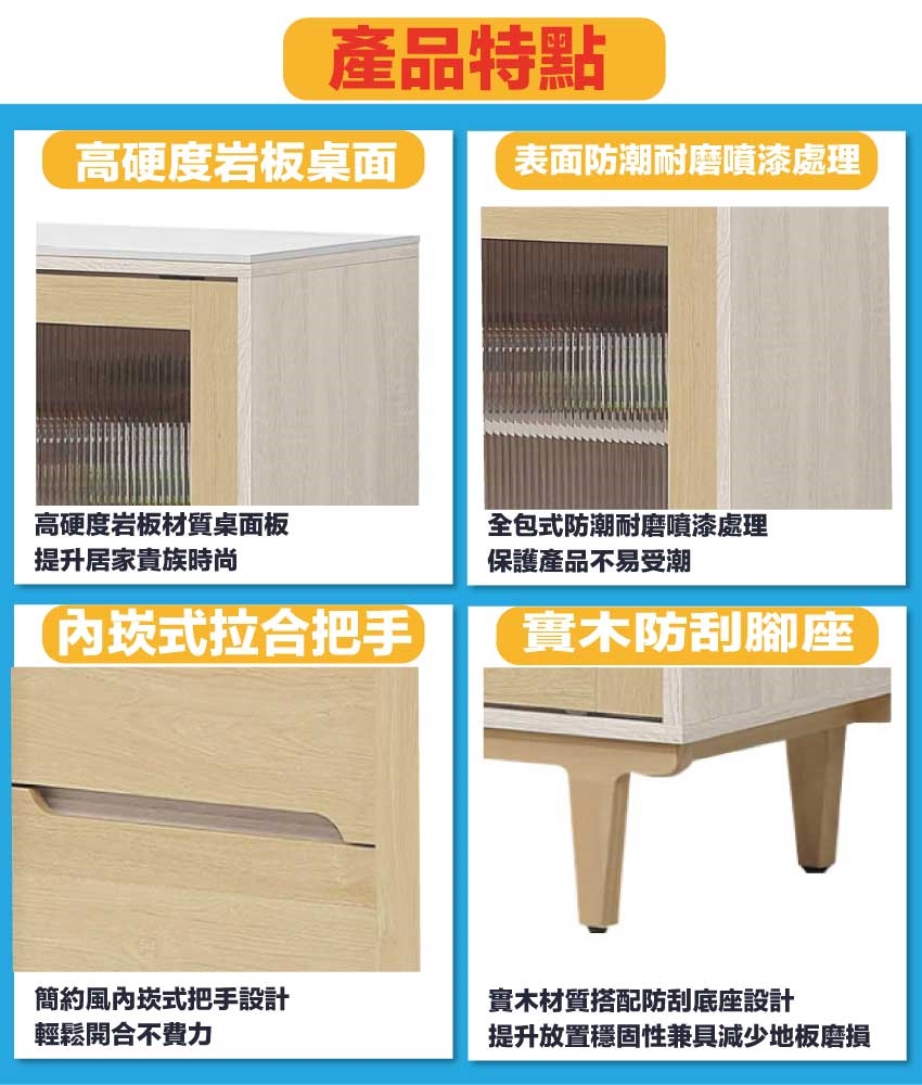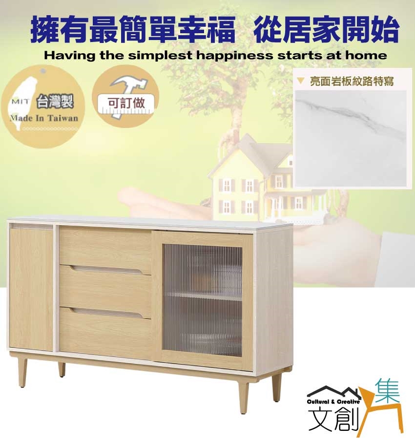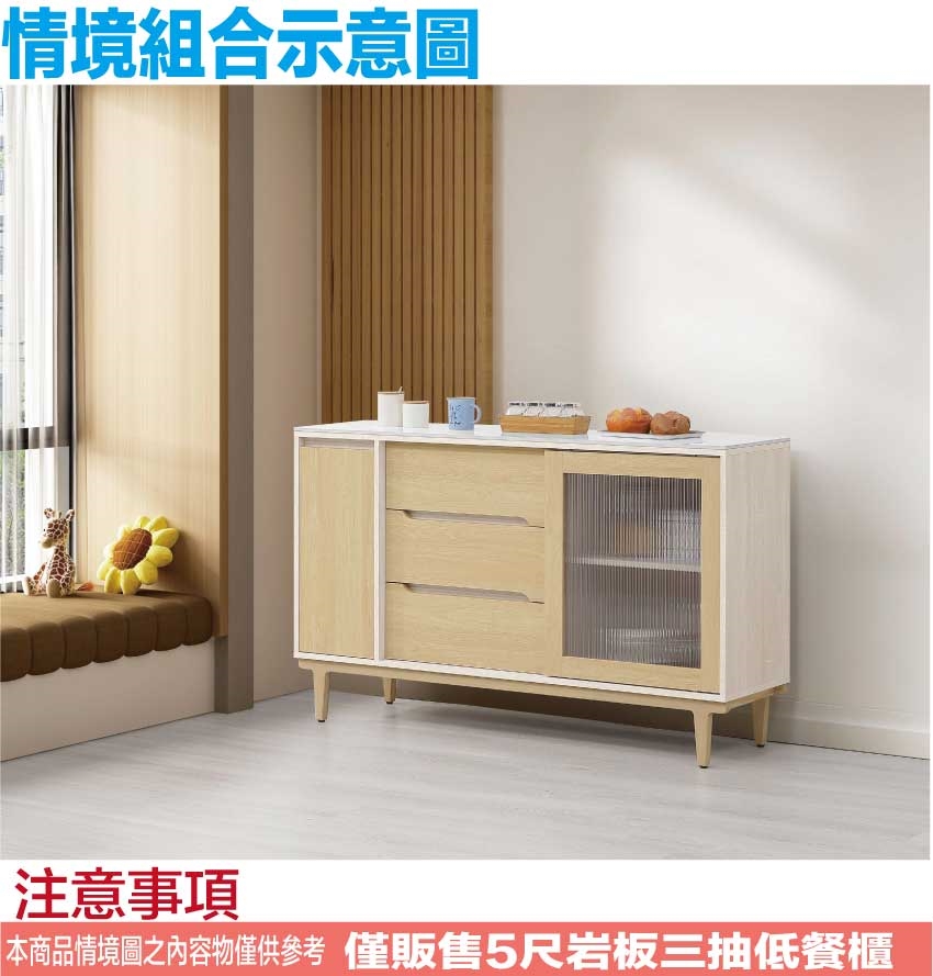 - ◆產品名稱:【綠家居】菲可雙色5尺推&開門岩板餐櫃