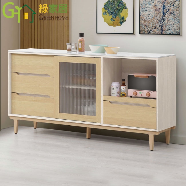【綠家居】菲可雙色6尺推門拉盤岩板餐櫃