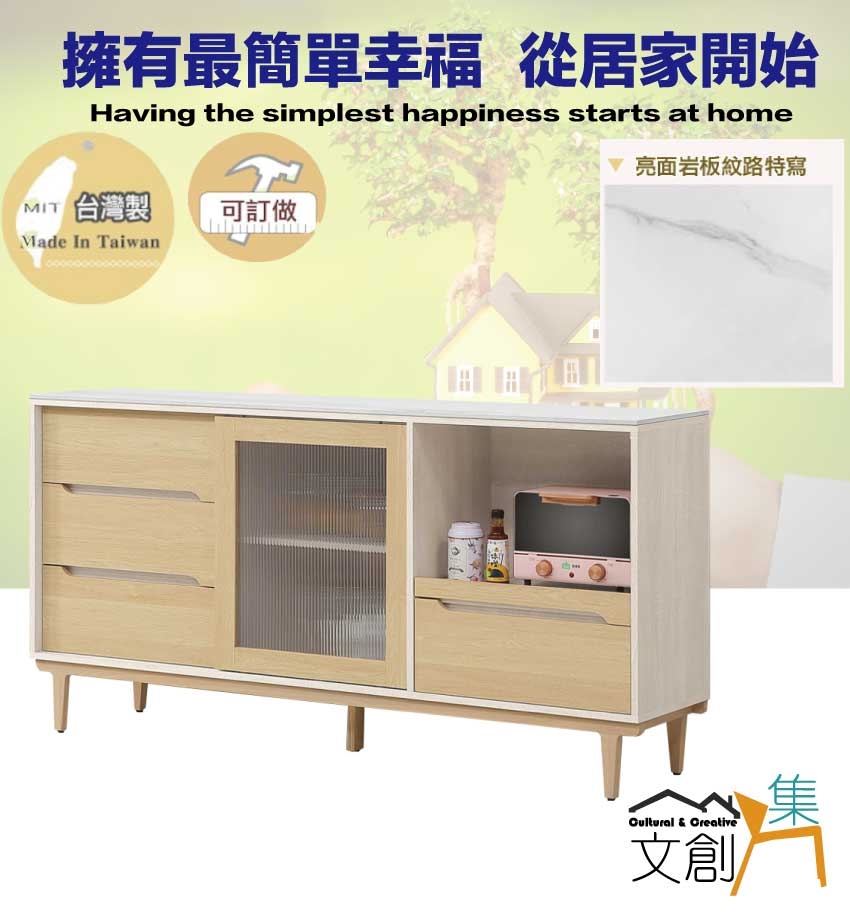 - ◆產品名稱:【綠家居】菲可雙色6尺推門拉盤岩板餐櫃