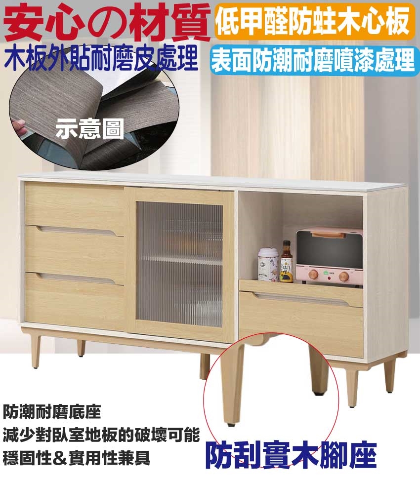 ★偏遠地區需額外加收運費,下標請先問與答詢問★ ★下訂前注意 由於商品流動較快,下訂前請先詢問是否有貨在下訂喔~★ 【綠家居】菲可雙色6尺推門拉盤岩板餐櫃 現代雙色系+安心材質製造,使用放心+搭配居家更便利,採用防蛀木心板+防刮實木腳座+五金滑軌結構+5mm長虹直紋PC耐力板+12mm高硬度岩板桌面板等安心材質製造 ,外層採用防潮耐磨噴漆處理搭配採用推門櫃+拉盤層架+四抽屜+內開放層格等收納空間設計,全由專人配送到家,專業安心服務,替你省下更多時間!