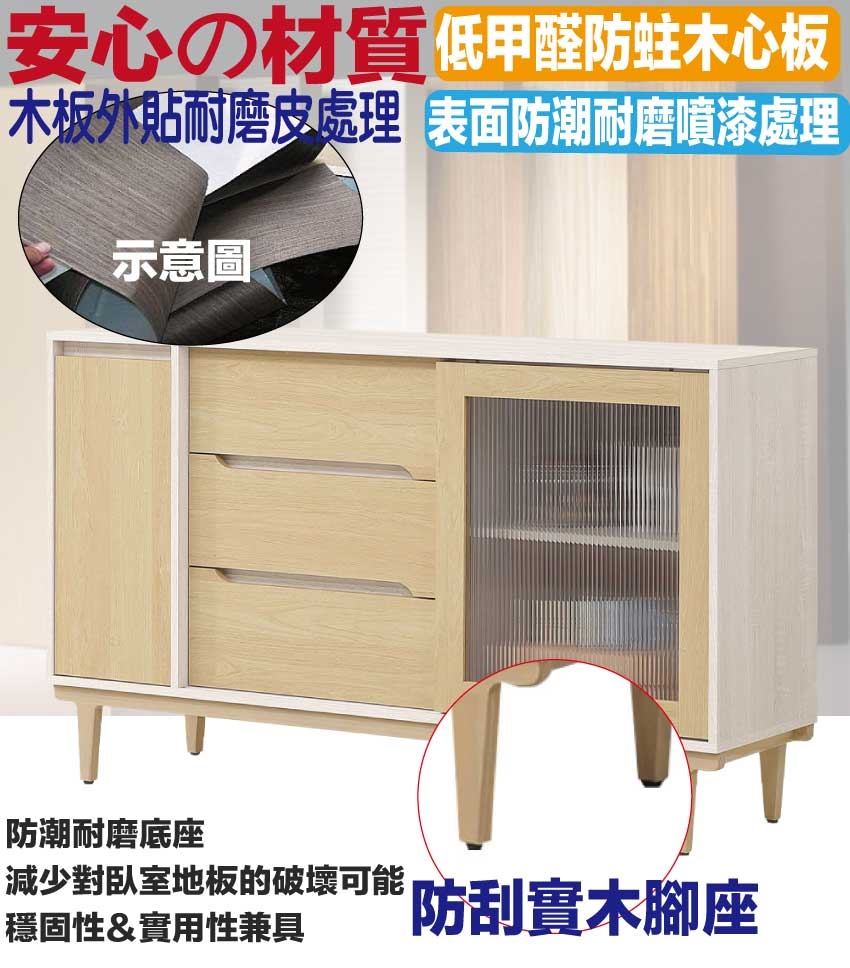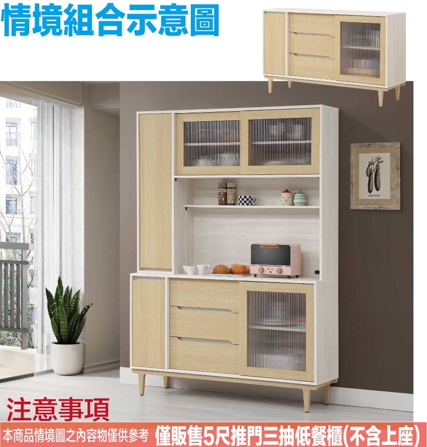 ★偏遠地區需額外加收運費,下標請先問與答詢問★ ★下訂前注意 由於商品流動較快,下訂前請先詢問是否有貨在下訂喔~★ 【綠家居】菲可雙色5尺推&開門餐櫃 現代雙色系+安心材質製造,使用放心+搭配居家更便利,採用防蛀木心板+防刮實木腳座+五金滑軌結構+5mm長虹直紋PC耐力板等安心材質製造 ,外層採用防潮耐磨噴漆處理搭配採用推門櫃+開門櫃+三抽屜+內開放層格等收納空間設計,全由專人配送到家,專業安心服務,替你省下更多時間!